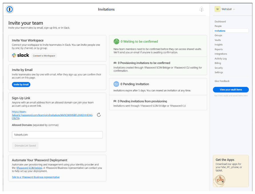 We highly recommend to read through the onboarding your team guide provided by 1password, but we’ll guide you through the basic steps to invite your team either way.